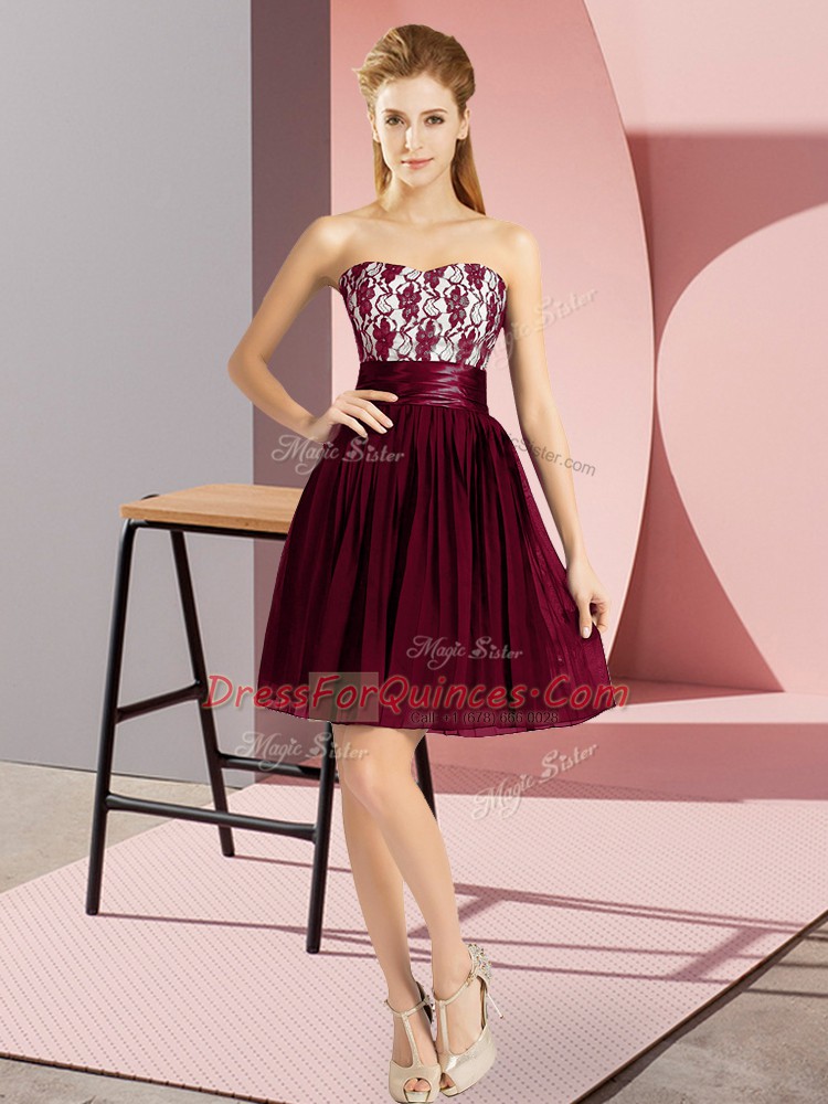 Burgundy Empire Sweetheart Sleeveless Chiffon Mini Length Zipper Lace Prom Dresses