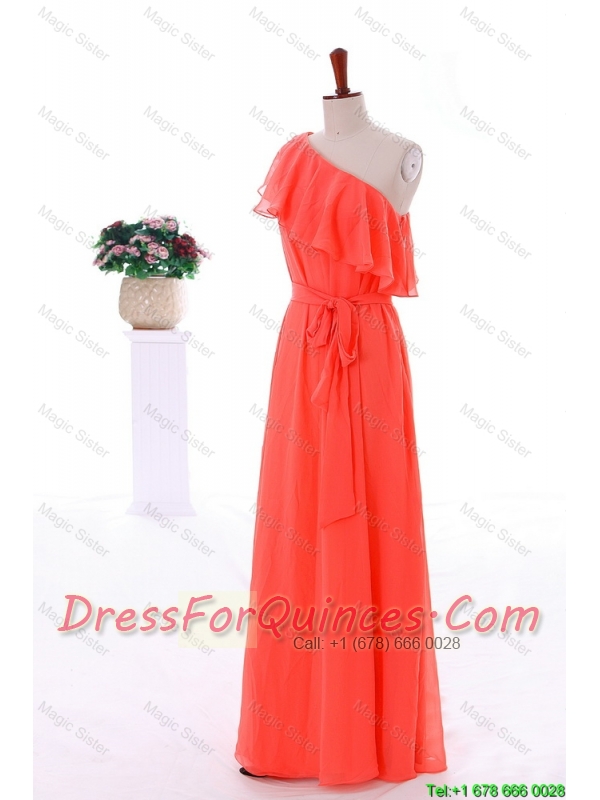 Cheap 2016 Popular Fall Empire One Shoulder Prom Dresses with Sashes