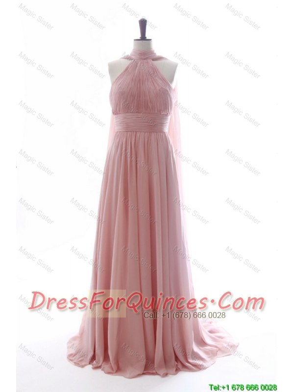 Cheap Discout Halter Top Red Prom Dresses with Ruching