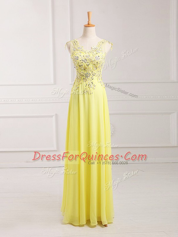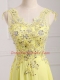 Cheap Yellow Prom Party Dress Chiffon Sleeveless Lace and Appliques