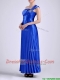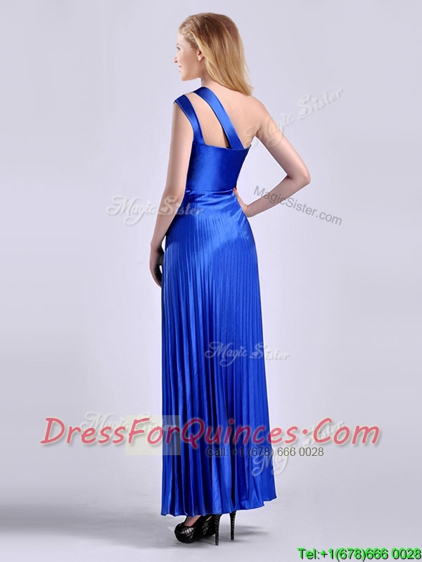 Discount Royal Blue Ankle Length Prom Dress with Beading and Pleats