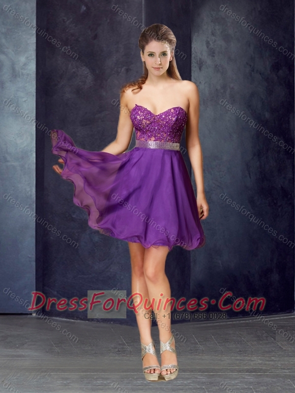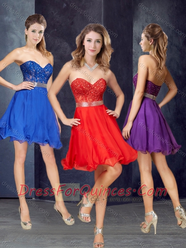 Elegant A Line Laced and Belted Short Prom Dress in Chiffon