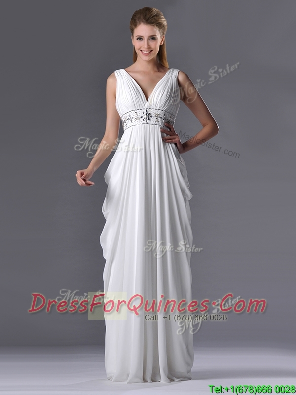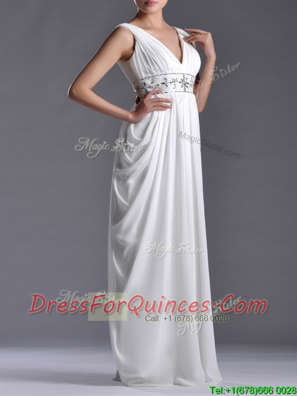 Elegant Empire V Neck Chiffon White Prom Dress for Graduation