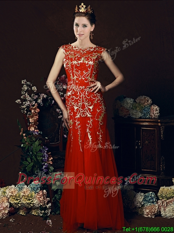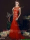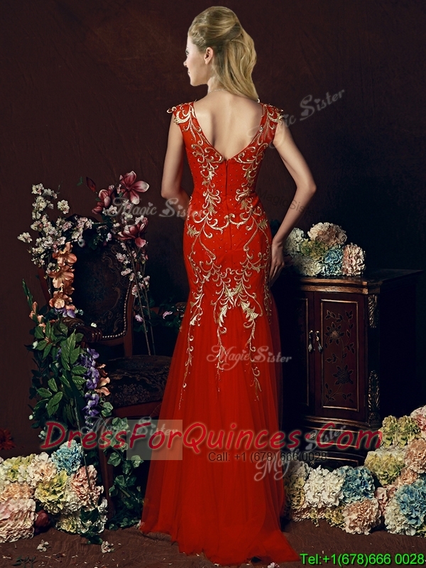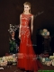 Elegant Mermaid Red Prom Dresses with Gold Sequined Appliques