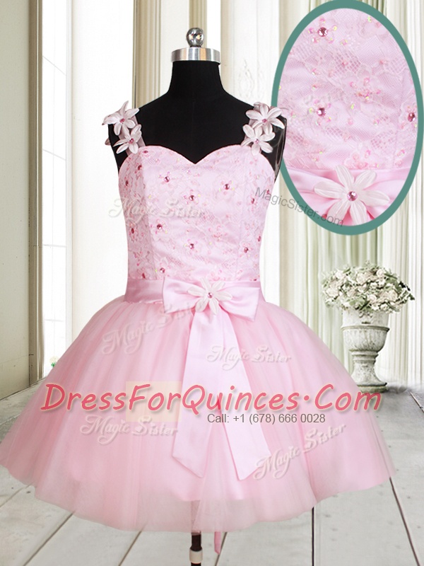 Elegant Straps Sleeveless Tulle Prom Party Dress Beading and Embroidery Lace Up