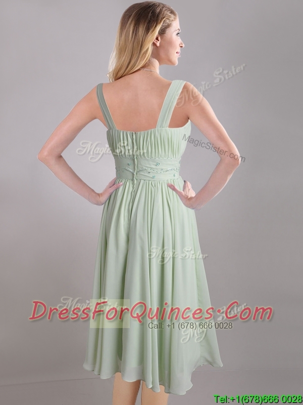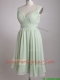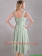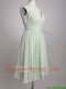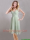 Exclusive Beaded and Ruched Apple Green V Neck Prom Dress in Chiffon