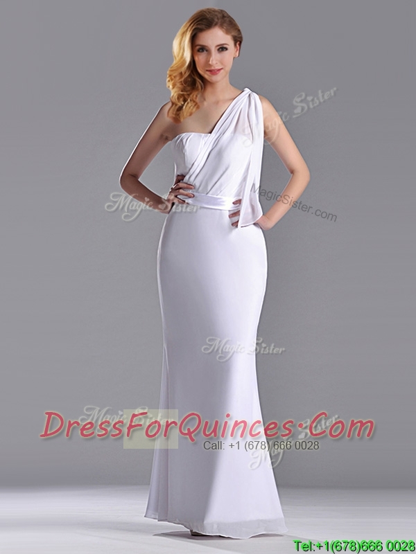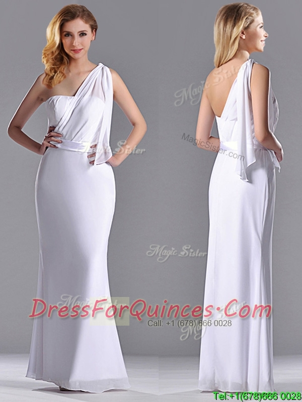 Exclusive Column White Chiffon Backless Prom Dress with One Shoulder