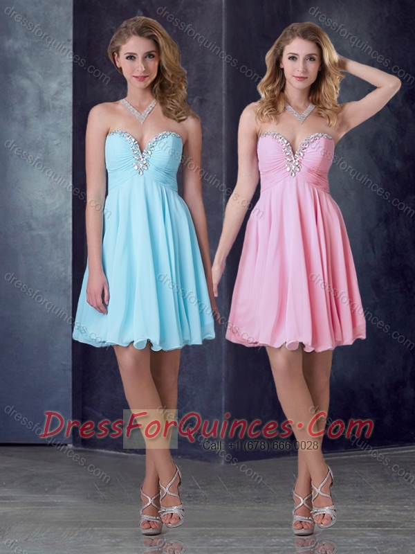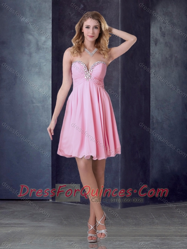 Exclusive Empire Chiffon Short Prom Dress with Beading and Ruching