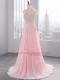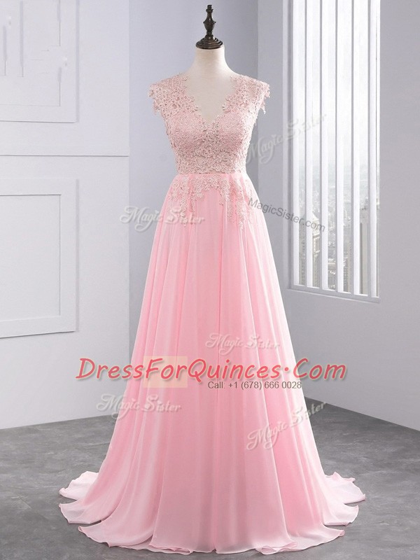 Flirting Side Zipper Evening Dress Baby Pink for Prom and Party with Appliques Brush Train