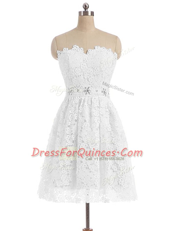 High Class White Sleeveless Knee Length Beading and Lace and Appliques Zipper