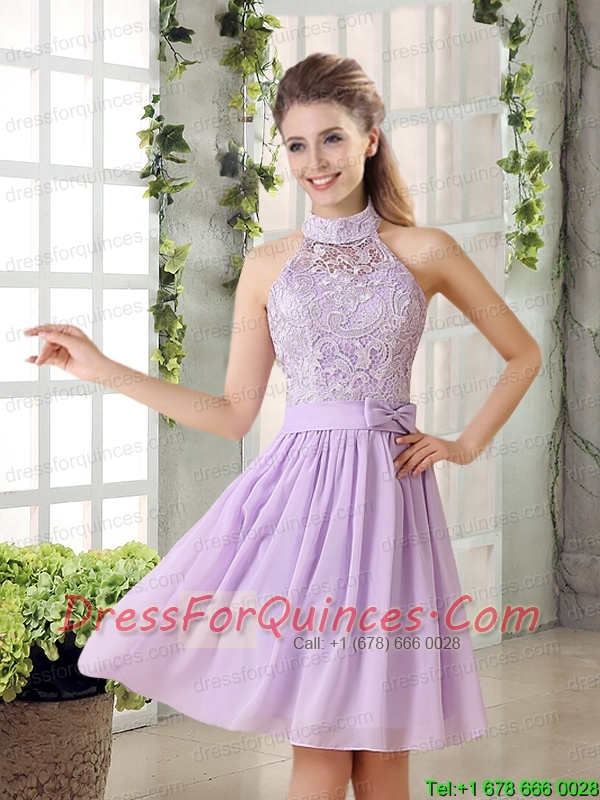 High Neck Lilac A Line Lace Sexy Prom Dress Chiffon for 2015