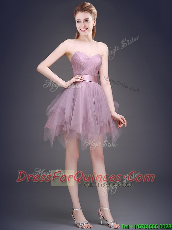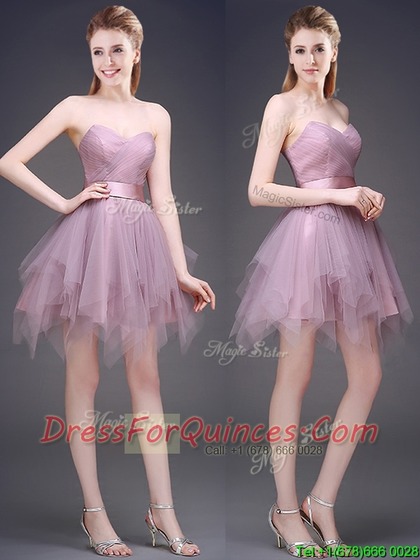 Hot Sale Lavender Short Prom Dresses with Ruffles and Belt