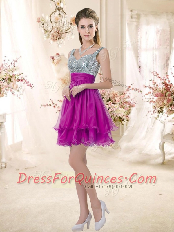 Hot Sale Straps Short Sexy Prom Fuchsia Dresses with Sequins