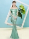 Inexpensive Floor Length Apple Green Off The Shoulder Short Sleeves Zipper