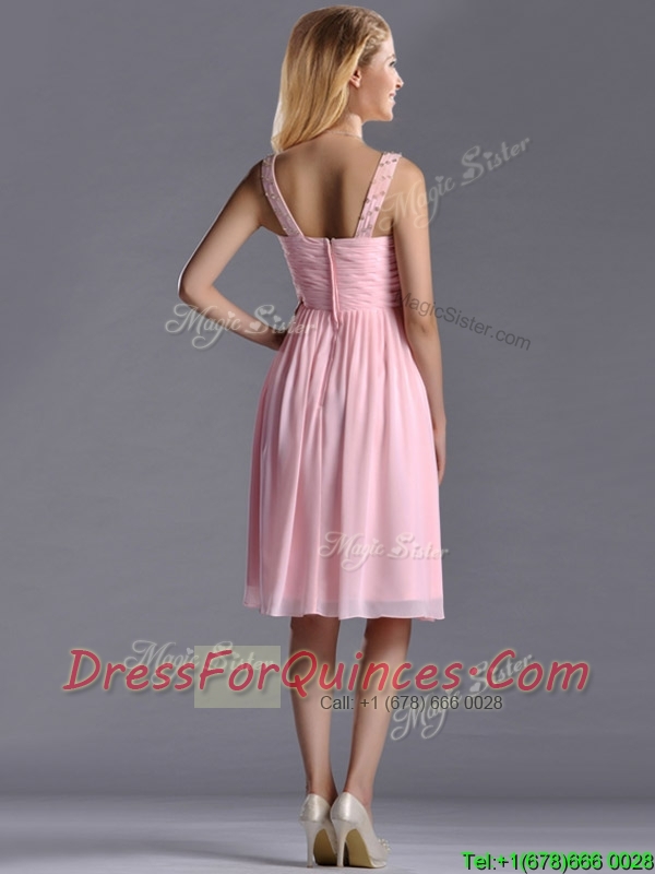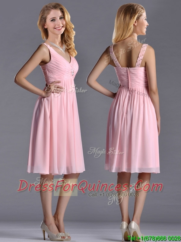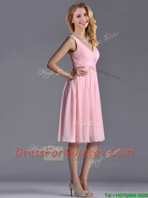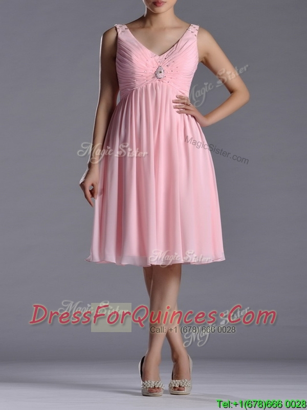 Lovely Empire V Neck Baby Pink Short Prom Dress with Beading