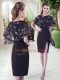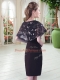 Low Price Knee Length Black Evening Dress Scoop Half Sleeves Lace Up