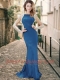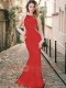 Luxurious See Through Mermaid Prom Dress with Beaded Long Sleeves