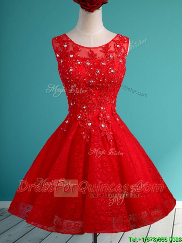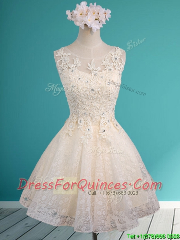 Luxurious See Through Scoop Short Prom Dresses with Beading and Appliques