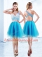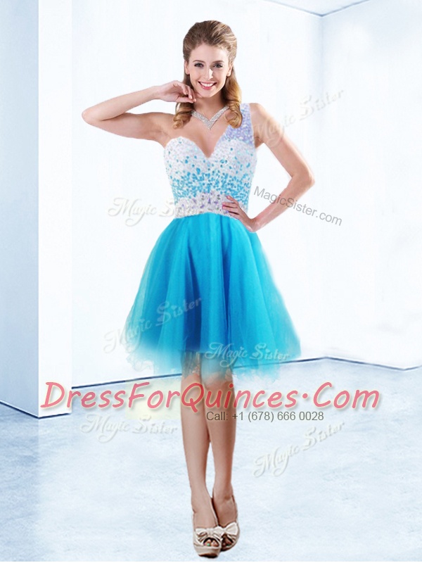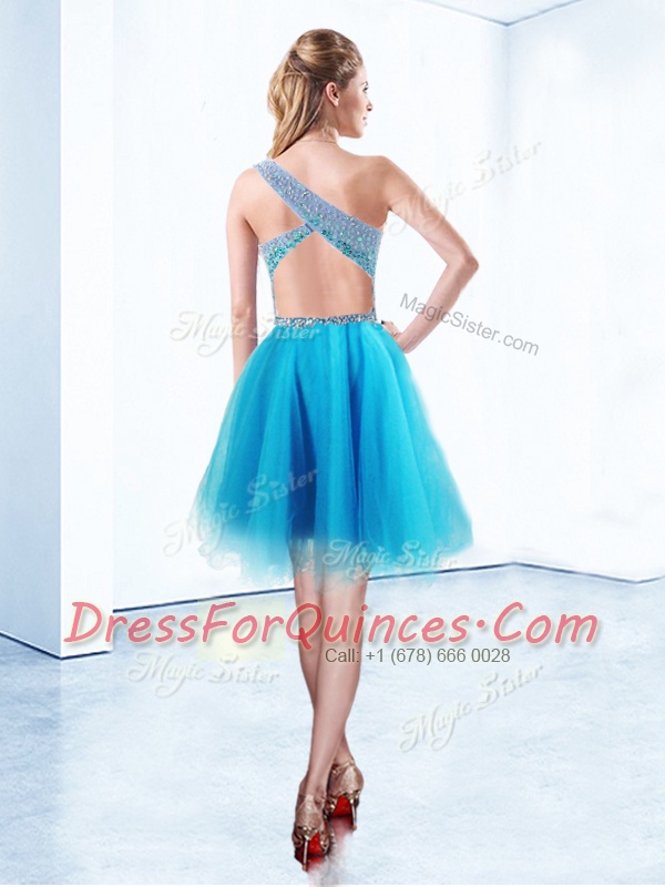 Luxury One Shoulder Sleeveless Criss Cross Knee Length Beading Homecoming Dress