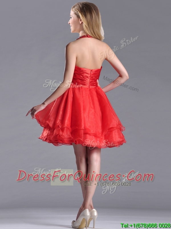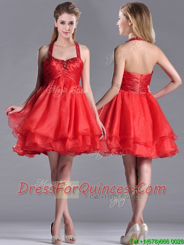 Modern Beaded Decorated Top and Halter Top Prom Dress in Organza