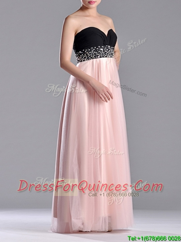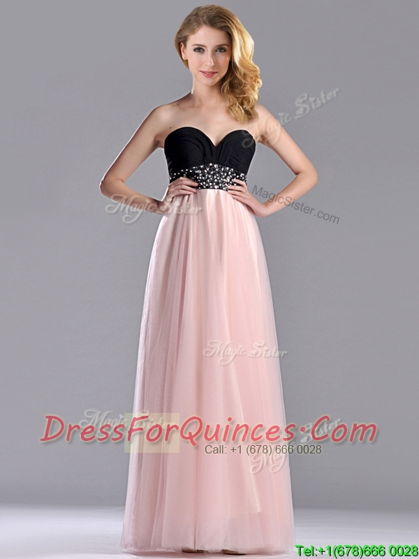 Modern Empire Beaded and Ruched Prom Dress in Baby Pink and Black