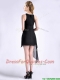 Modern Scoop Asymmetrical Black Chiffon Prom Dress with Beading
