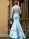 Modest Mermaid Applique Brush Train Prom Dresses in Light Blue