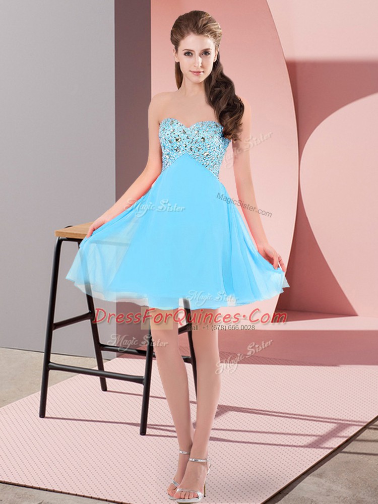 Most Popular Aqua Blue Sleeveless Beading Mini Length Prom Dress