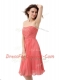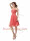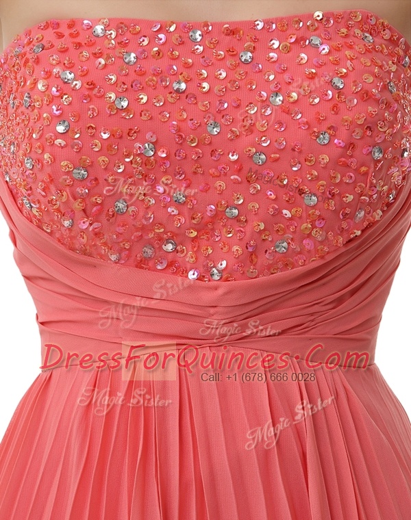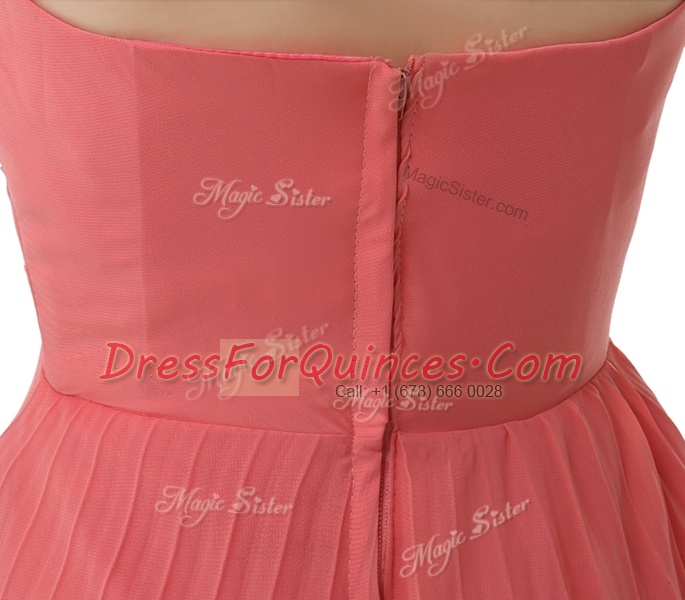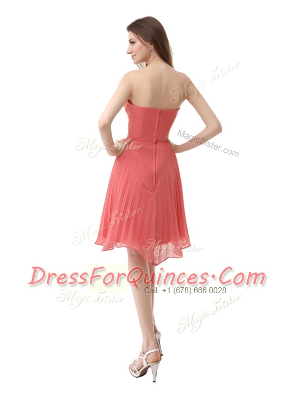 On Sale Sleeveless Chiffon Knee Length Zipper Evening Dress in Watermelon Red with Beading and Pleated