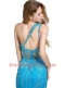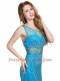 One Shoulder Baby Blue Tulle Zipper Prom Evening Gown Sleeveless With Brush Train Beading