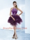 Organza Halter Top Sleeveless Zipper Beading Prom Party Dress in Dark Purple