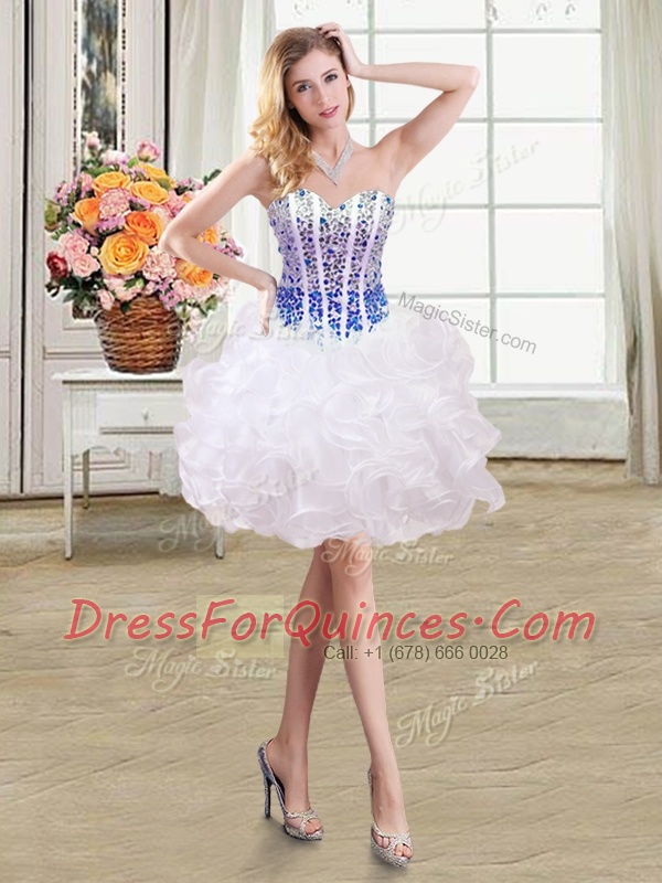 Organza Sleeveless Mini Length Prom Dress and Beading and Ruffles