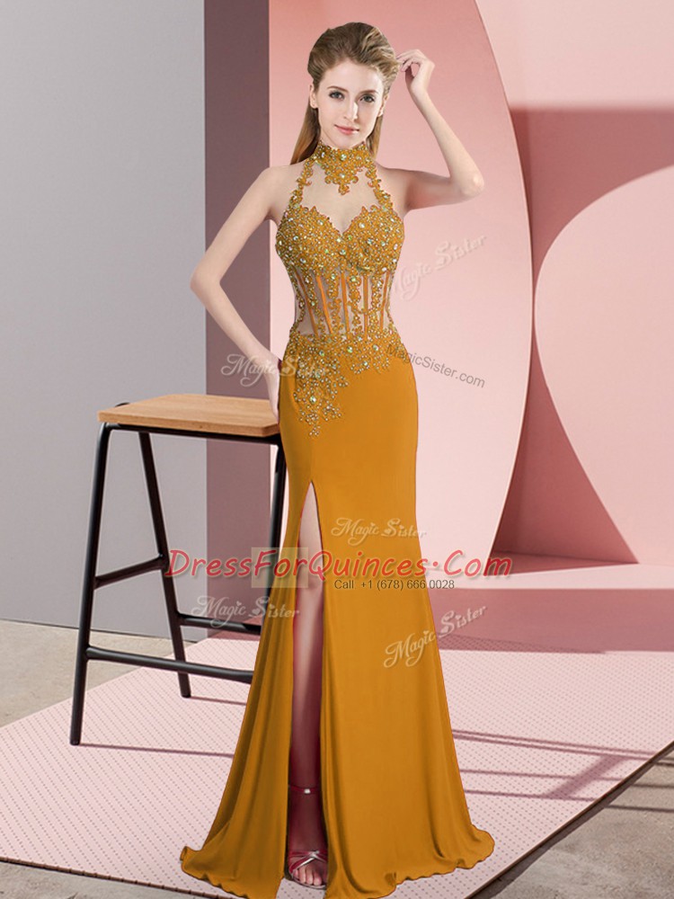 Perfect Gold Sleeveless Lace and Appliques Floor Length Dress for Prom