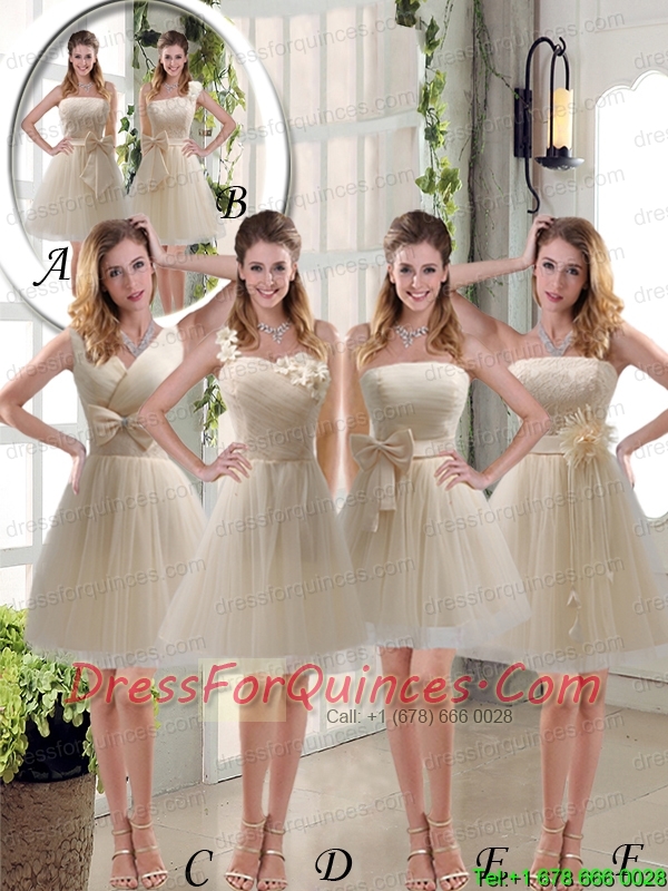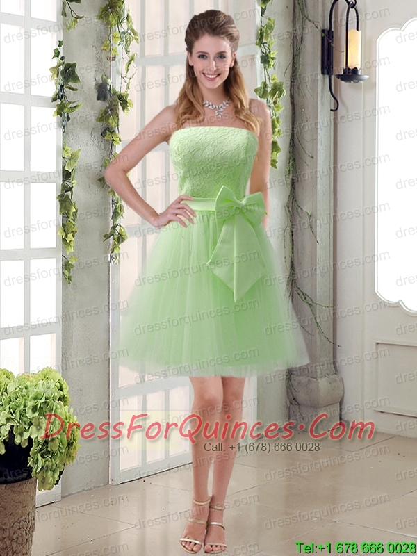 Popular Champagne Strapless Princess Bowknot Sexy Prom Dresses for 2015