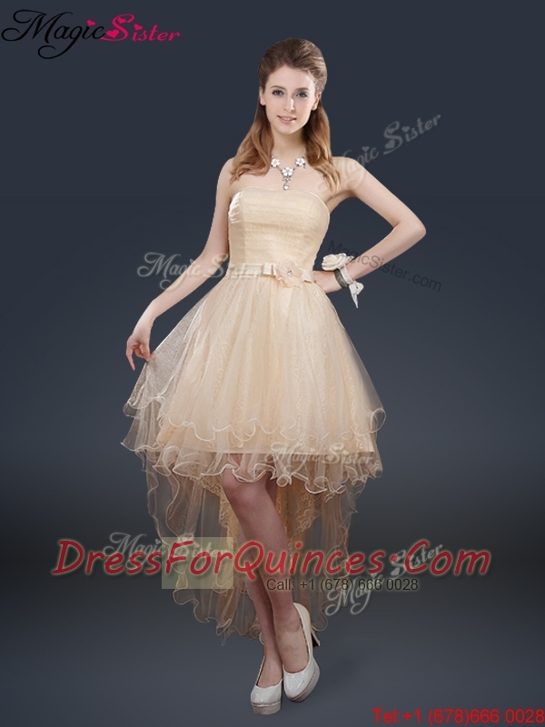 Pretty 2016 High Low Prom Dresses with Belt for Fall