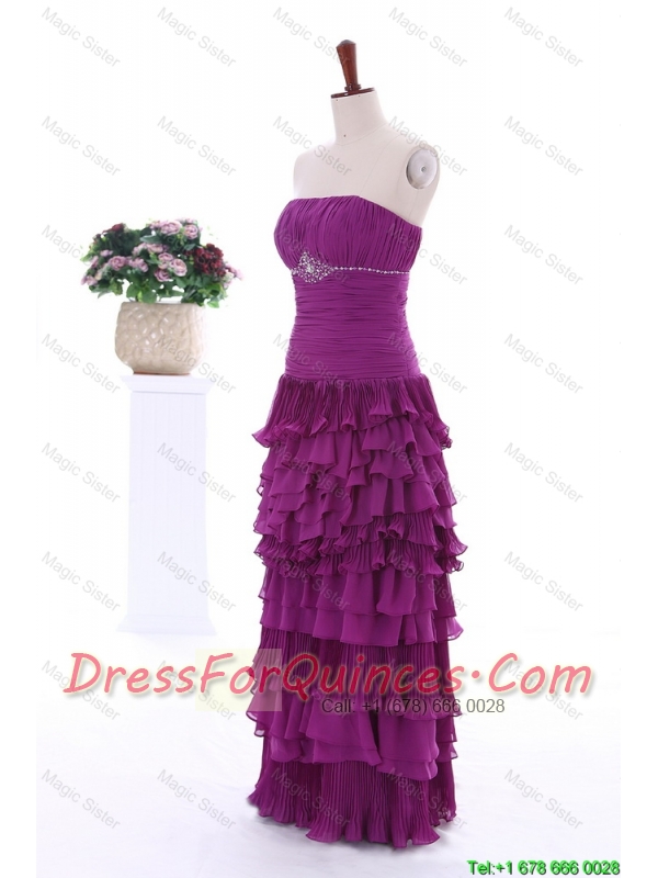 Pretty 2016 Winter Popular Empire Strapless Beaded Prom Dresses with Ruffled Layers
