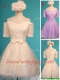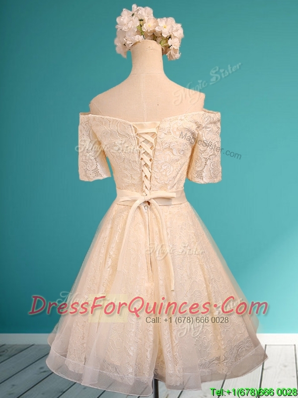 Pretty Off the Shoulder Short Sleeves Champagne Prom Dresses with Bowknot