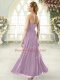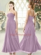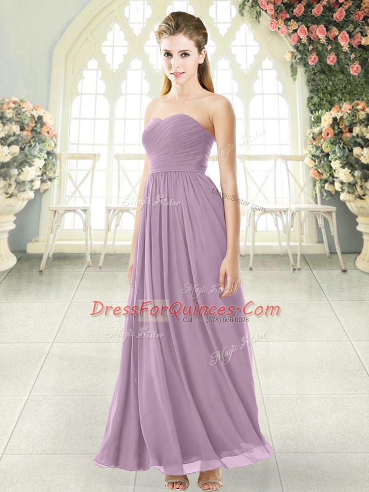 Purple Empire Ruching Evening Dress Zipper Chiffon Sleeveless Ankle Length