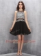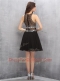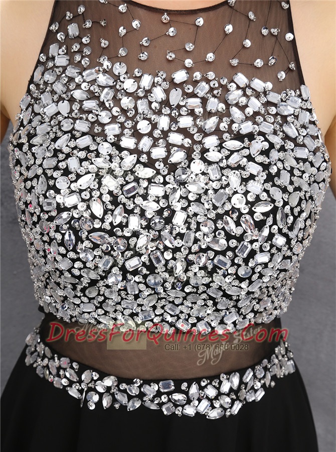 Scoop Black Chiffon Zipper Prom Dresses Sleeveless Knee Length Beading