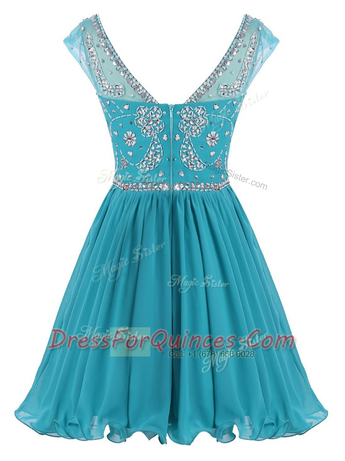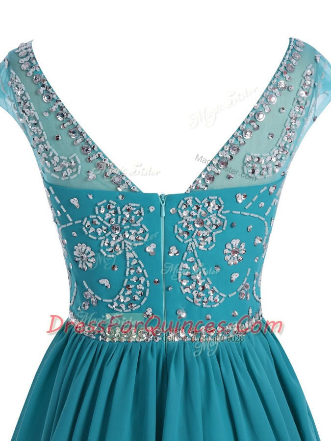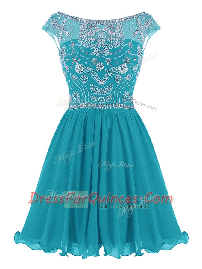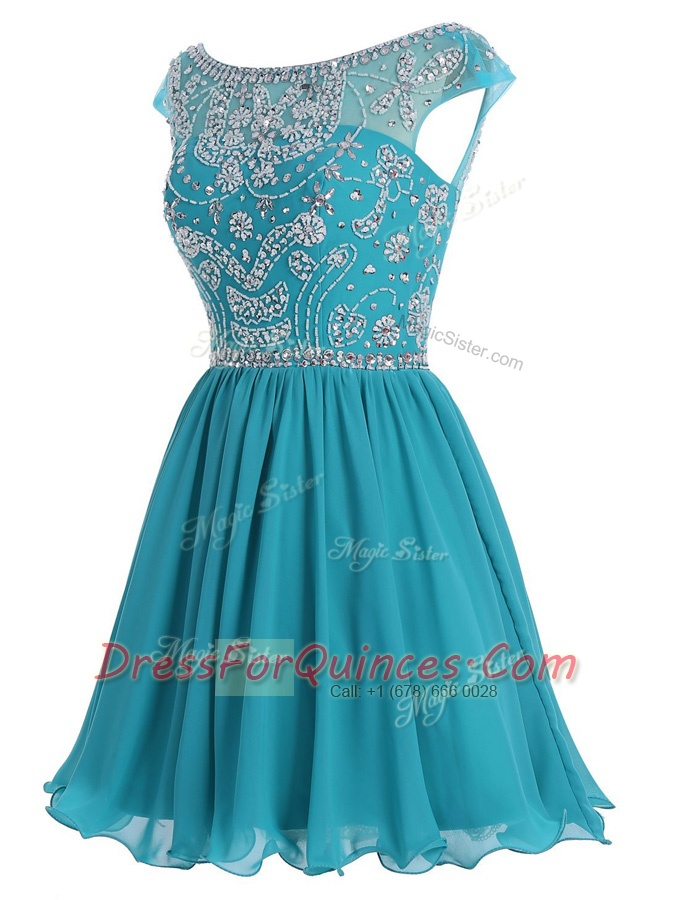Scoop Mini Length Zipper Teal for Prom and Party with Beading