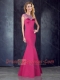 See Through Back Satin Beaded Prom Dress in Hot Pink
