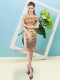 Sequined Short Sleeves Mini Length Prom Evening Gown and Sequins
