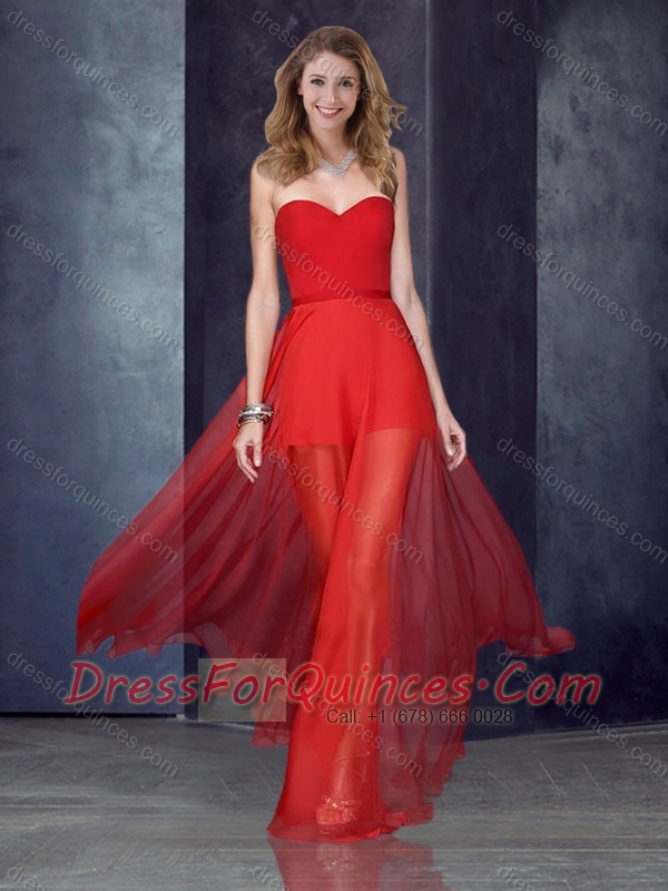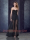 Short Inside Long Outside Black Prom Dress with Belt