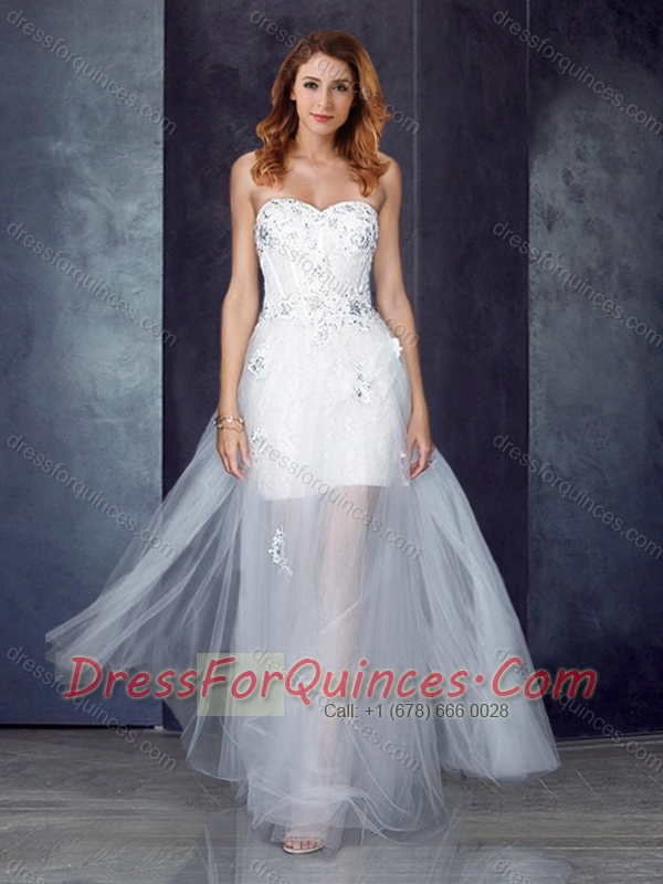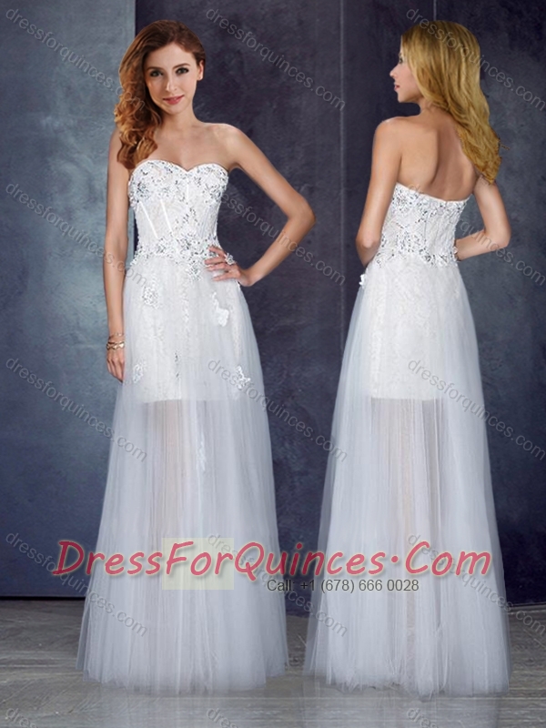 Short Inside Long Outside Tulle White Prom Dress with Appliques and Beading
