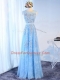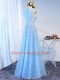 Simple Baby Blue A-line Beading and Lace and Appliques and Belt Prom Party Dress Zipper Tulle Sleeveless Floor Length