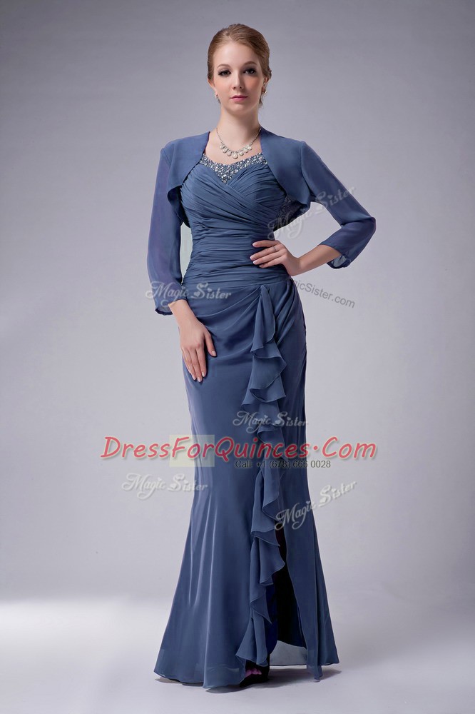 Sleeveless Chiffon Floor Length Zipper in Blue with Beading