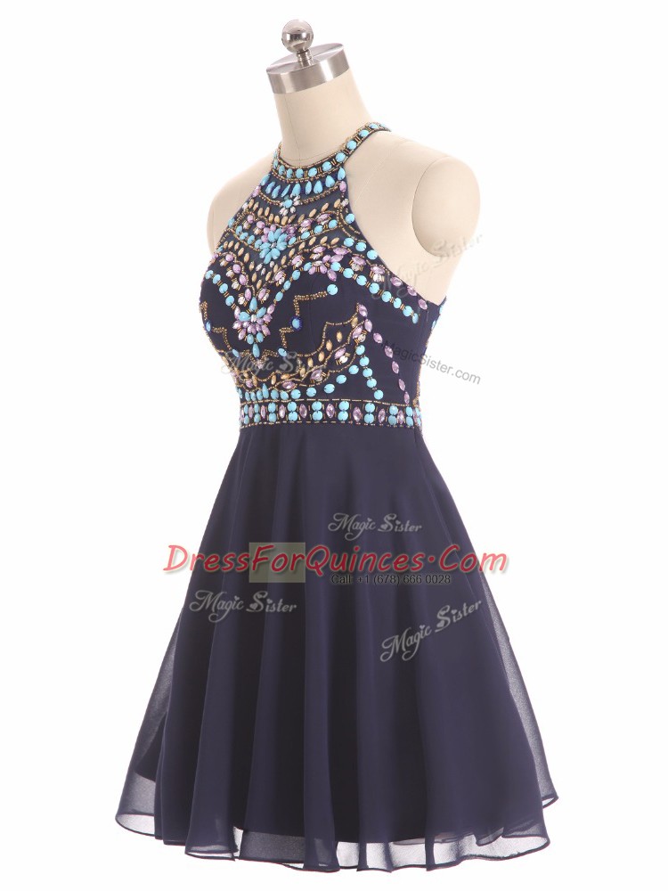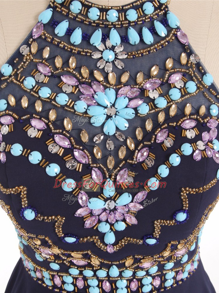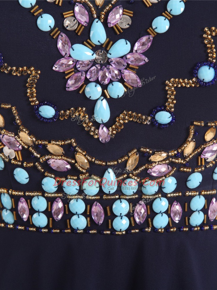 Sleeveless Chiffon High Low Side Zipper Prom Evening Gown in Black with Beading