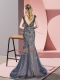Smart Teal Zipper V-neck Beading Prom Gown Tulle Sleeveless Sweep Train