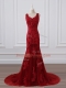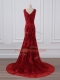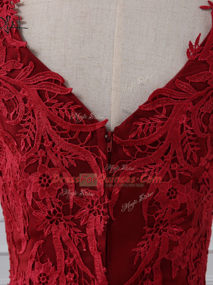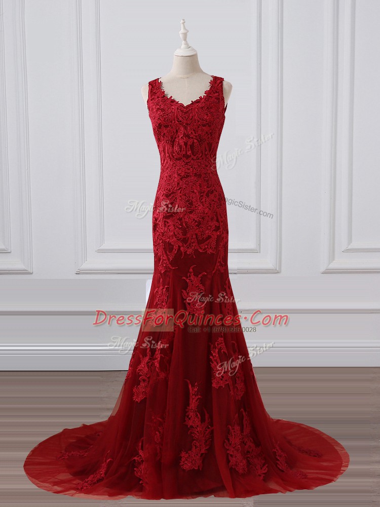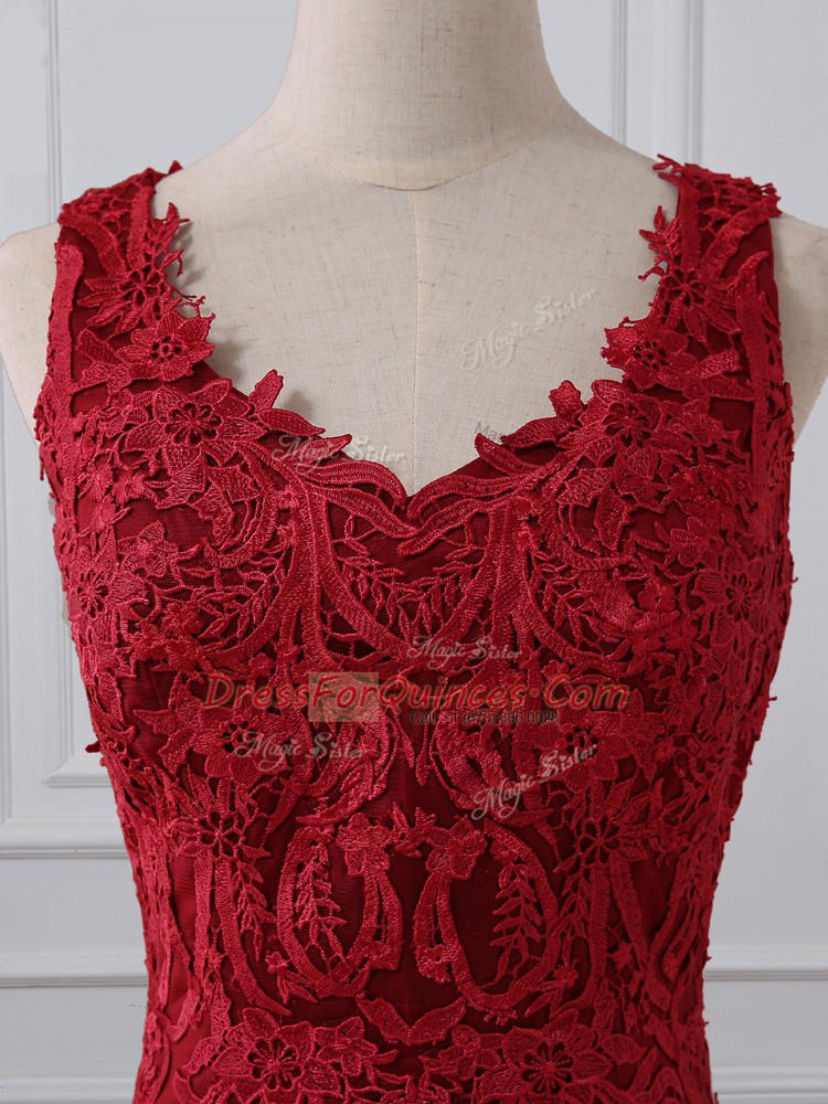 Superior Red Zipper Evening Dress Lace and Appliques Sleeveless Brush Train