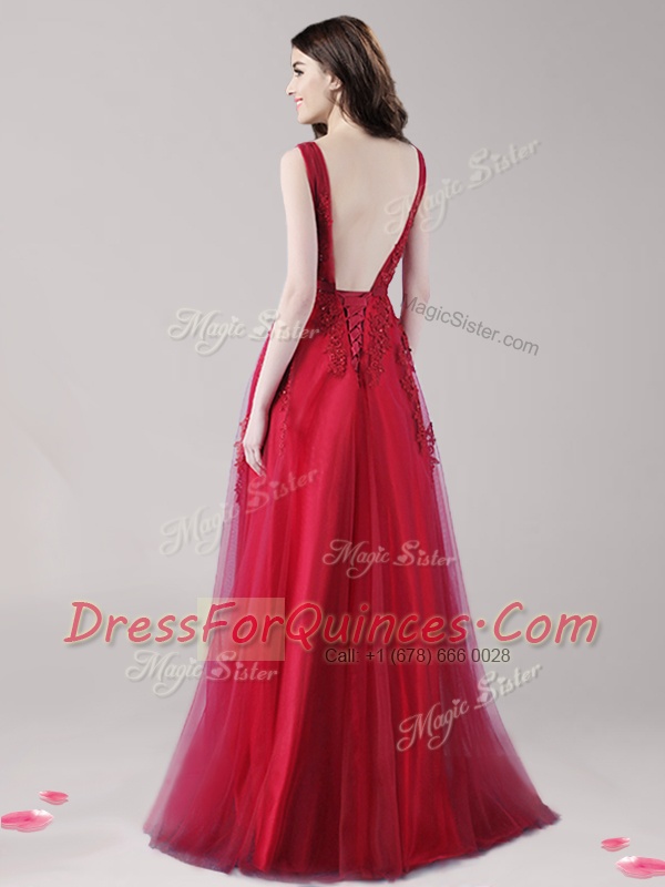 Sweet Straps Floor Length A-line Sleeveless Wine Red Backless